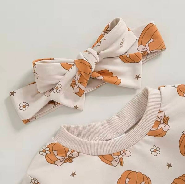 Long sleeve pumpkin romper with matching headband bow